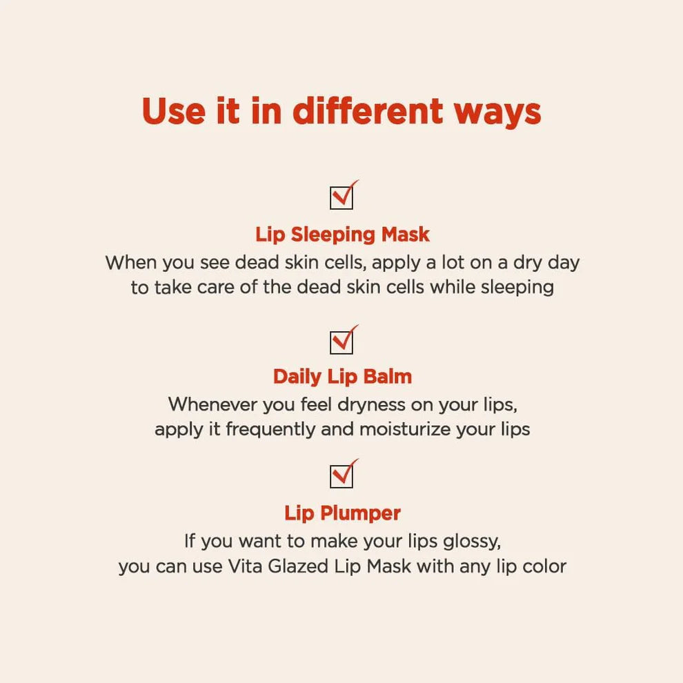 The TOCOBO Vita Glazed Lip Mask delivers deep nourishment and a glossy finish to dry, chapped lips. Enriched with Vitamin E, Shea Butter, and Plant-Derived Oils, this luxurious mask restores moisture, smooths texture, and enhances natural lip color overnight. Its rich, balm-like texture melts into the lips, leaving them soft, supple, and visibly plumped by morning.