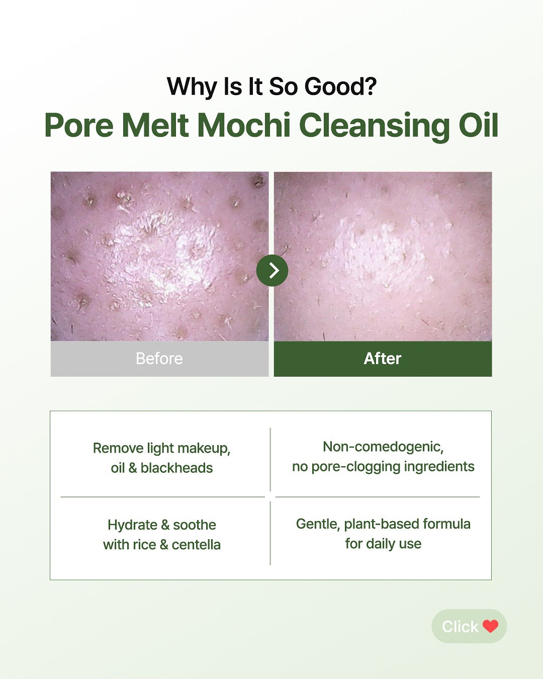 Melt away makeup, sunscreen, and daily buildup with Arencia Pore Melt Mochi Cleansing Oil, a silky Korean cleansing oil designed to deeply purify pores while keeping skin soft and hydrated. The lightweight oil transforms into a milky emulsion upon contact with water, helping remove excess sebum and impurities without stripping the skin.