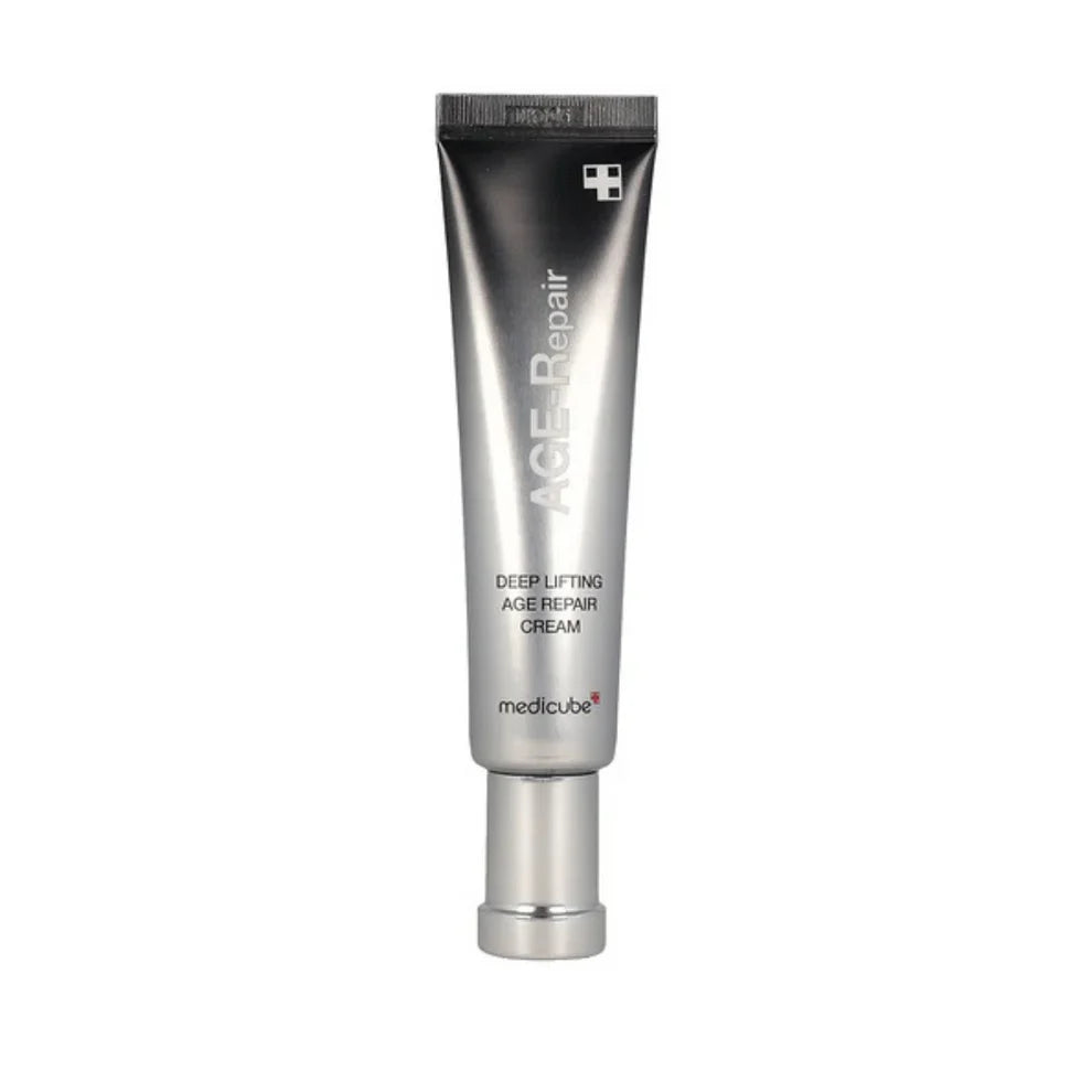 The MEDICUBE AGE-R I Shot + Deep Lifting Age Repair Cream is an advanced anti-aging eye and face cream designed to firm, lift, and smooth the skin. Formulated with Peptides, Retinol, and Collagen-boosting ingredients, it targets fine lines, wrinkles, and sagging skin while deeply hydrating and strengthening the skin barrier. The silky texture absorbs quickly, leaving the skin revitalized, plump, and youthful-looking. Ideal for mature and aging skin.