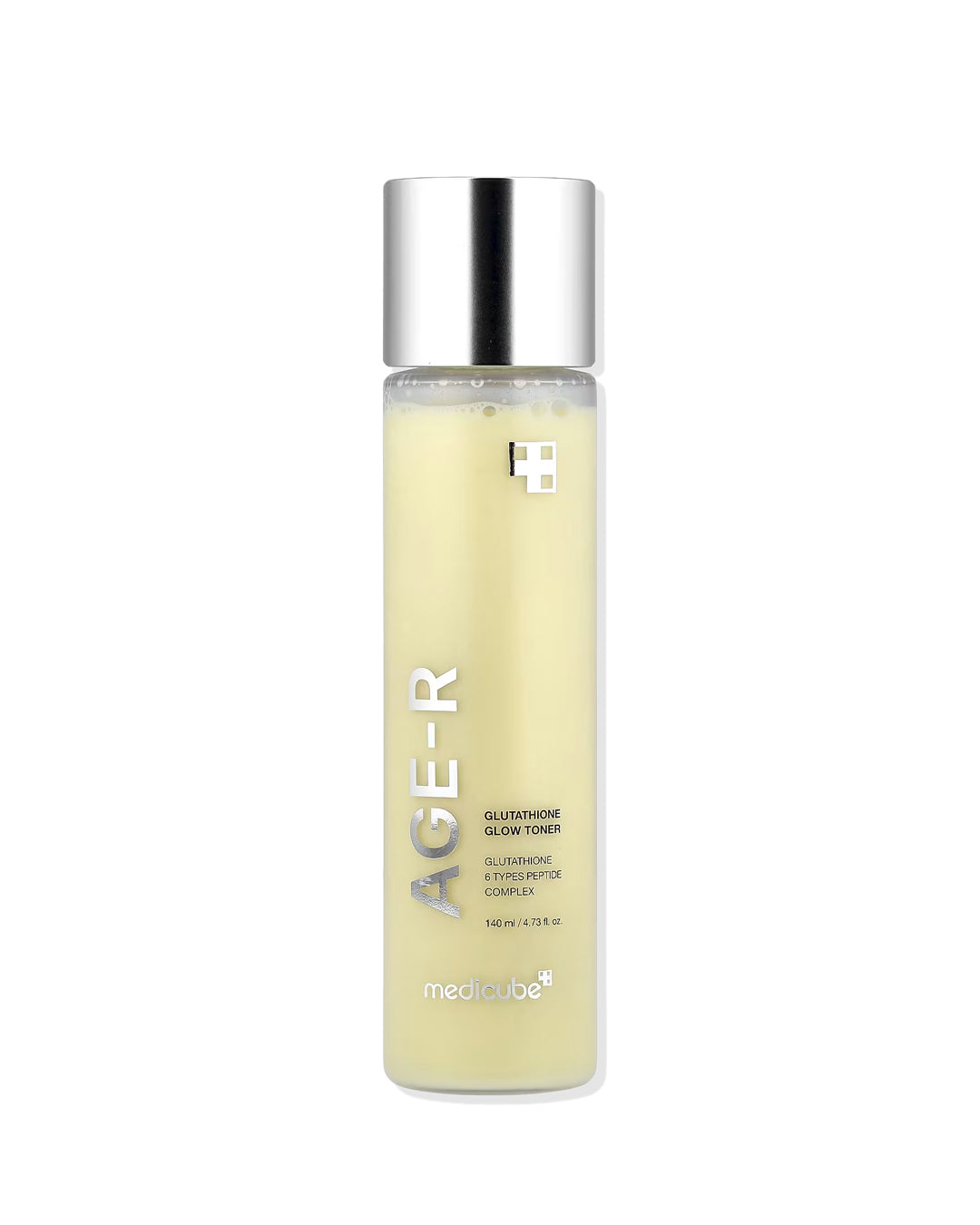 Medicube AGE-R Glutathione Glow Toner is a brightening and anti-aging toner infused with glutathione, known for its skin-brightening and antioxidant properties. This toner helps to even out skin tone, reduce dark spots, and provide deep hydration. With a lightweight, fast-absorbing formula, it preps the skin for the next skincare steps while delivering a healthy, radiant glow.