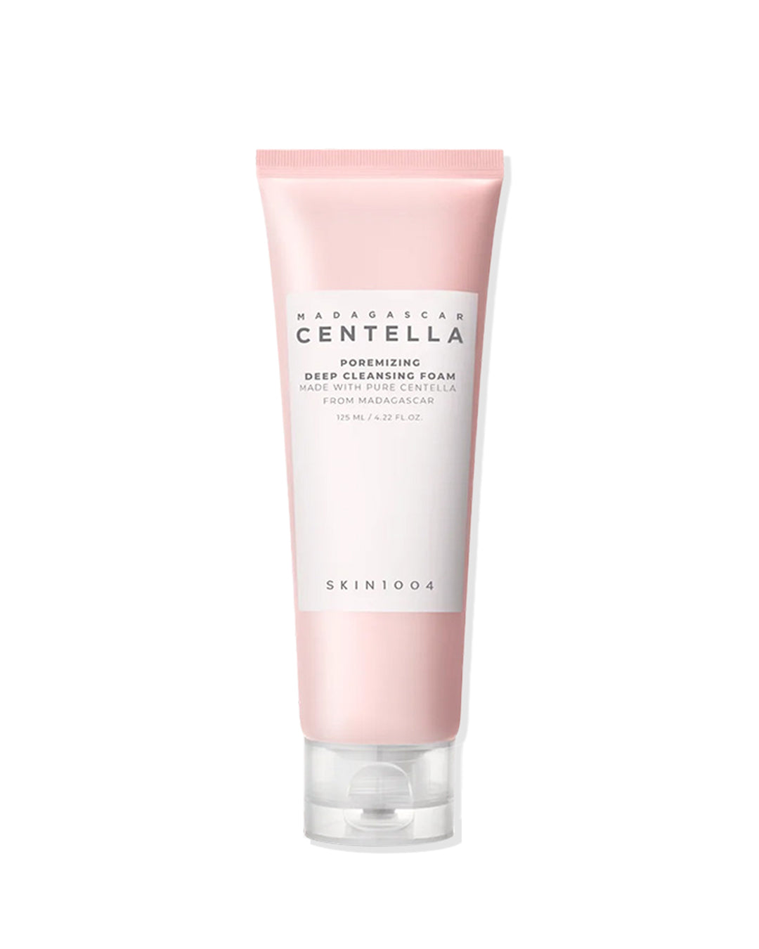 The SKIN1004 Poremizing Deep Cleansing Foam is a facial cleanser designed to deeply cleanse and purify the skin, effectively removing impurities, excess sebum, and even stubborn sunscreen residues. Its unique formulation transforms from a creamy paste into a rich foam upon contact with water, ensuring a thorough cleanse without over-drying the skin.